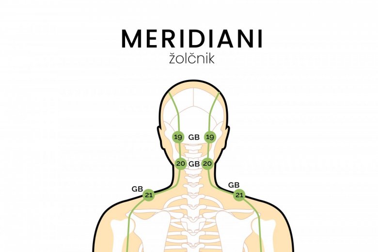 Po TKM je tako lahko pogosto obremenjen sistem jeter–žolčnika, kar se pa lahko kaže kot bolečine in napetosti v predelu ramen. Zlasti je občutljiva ena točka, ki je pogosto boleča GB 21– ŽOLČNIK 21.